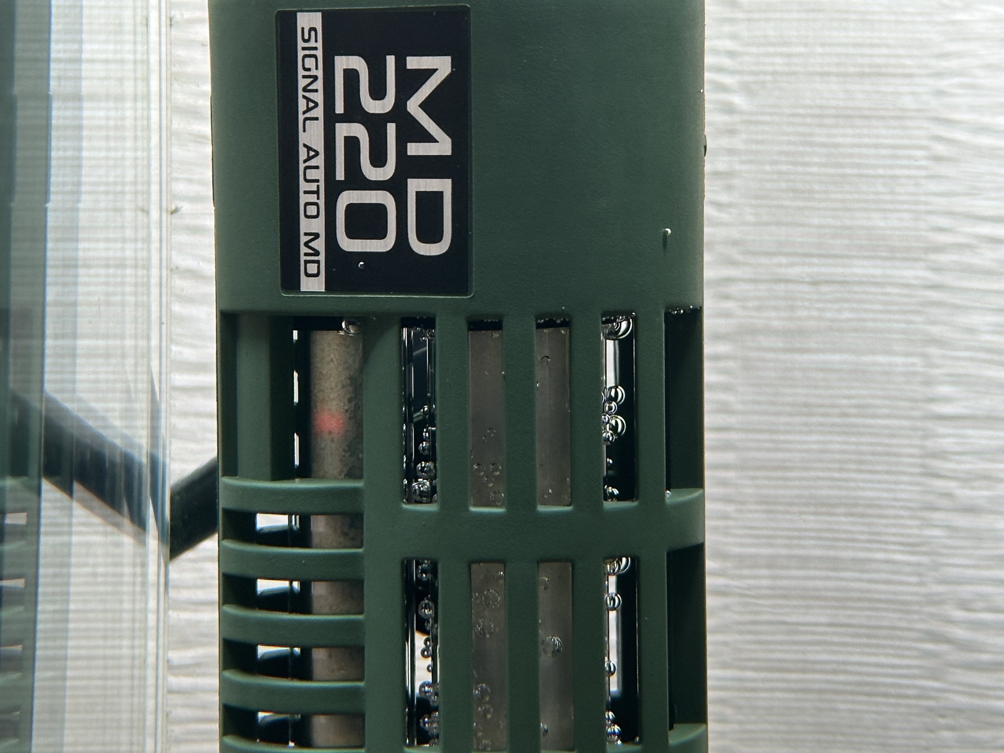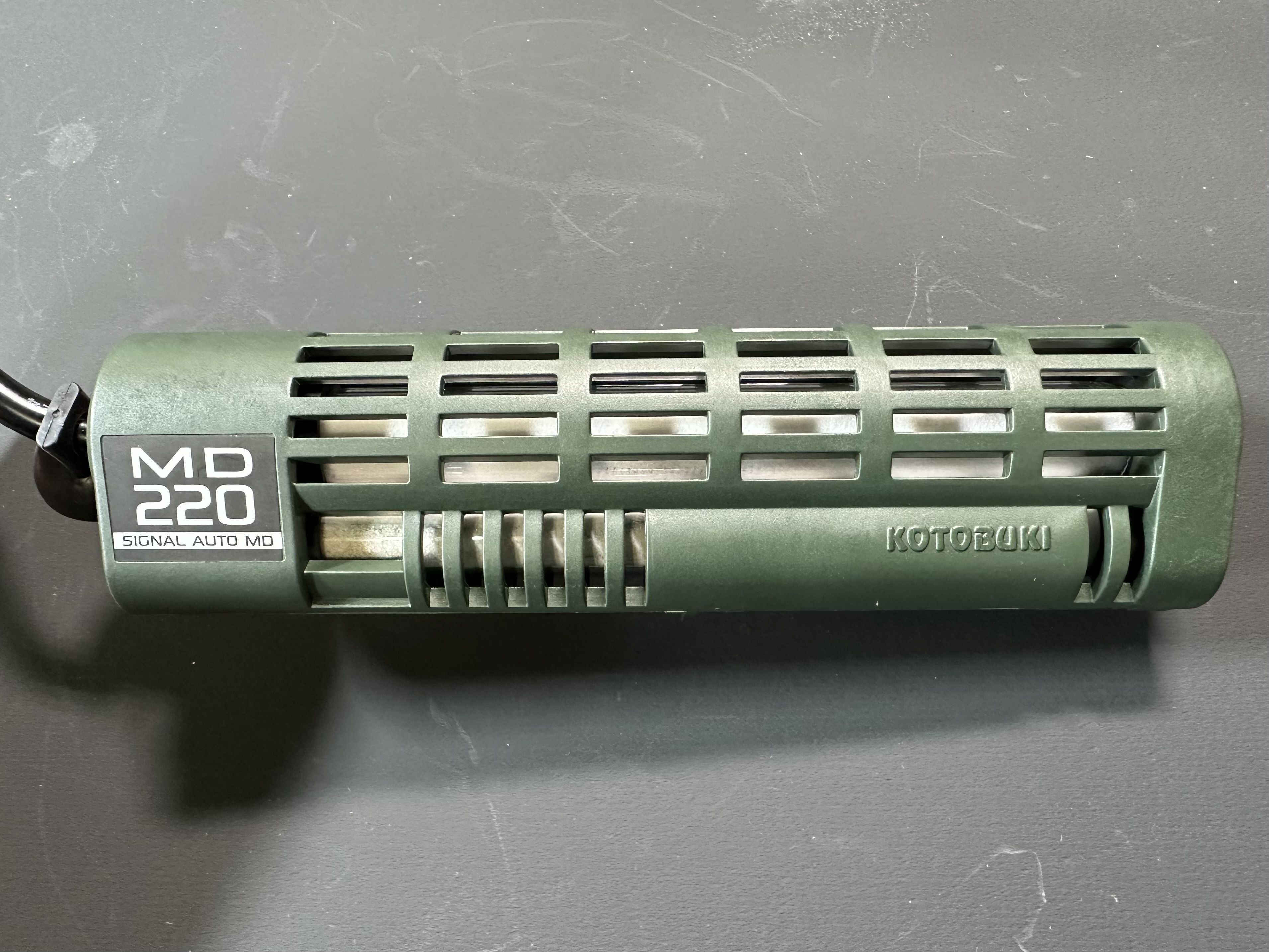 珍しいモスグリーンのカラーで水槽内で目立たない工夫がなされています。
