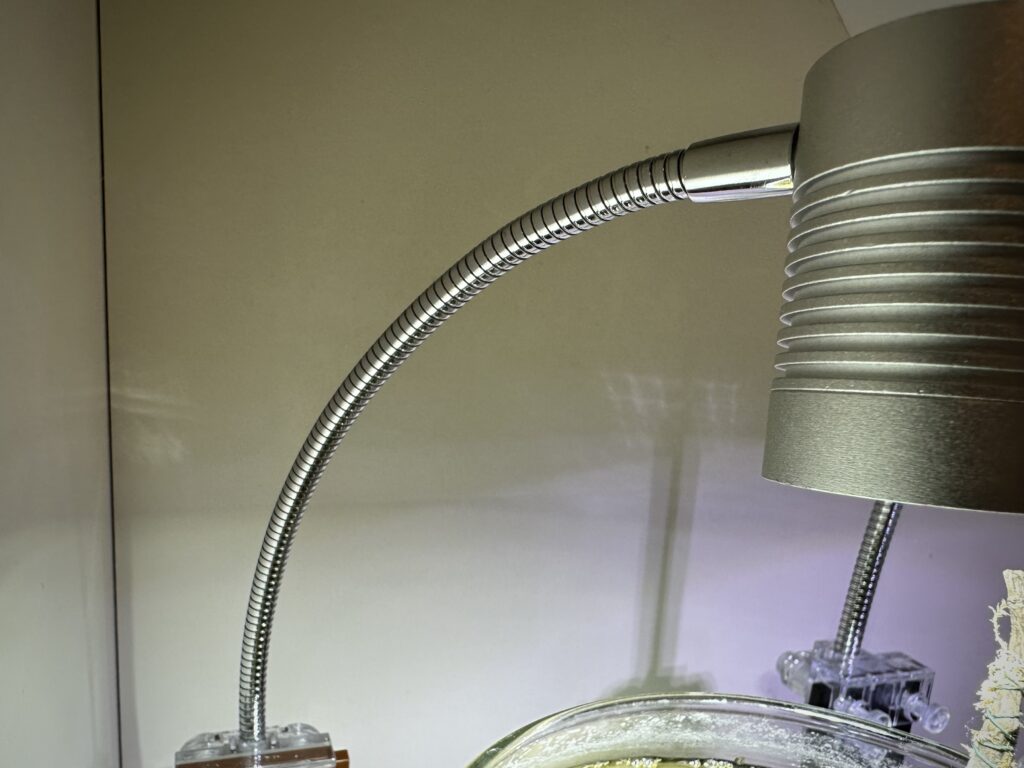 アームタイプのLED照明用ライトスタンドが付属しており、リーフグローのアタッチメントとジャストフィット。