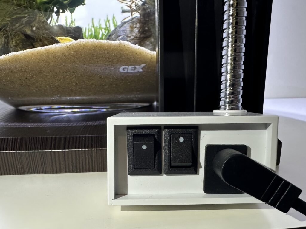電源スイッチはロッカータイプですのでもちろんタイマーに接続して点灯時間を管理することが可能です。