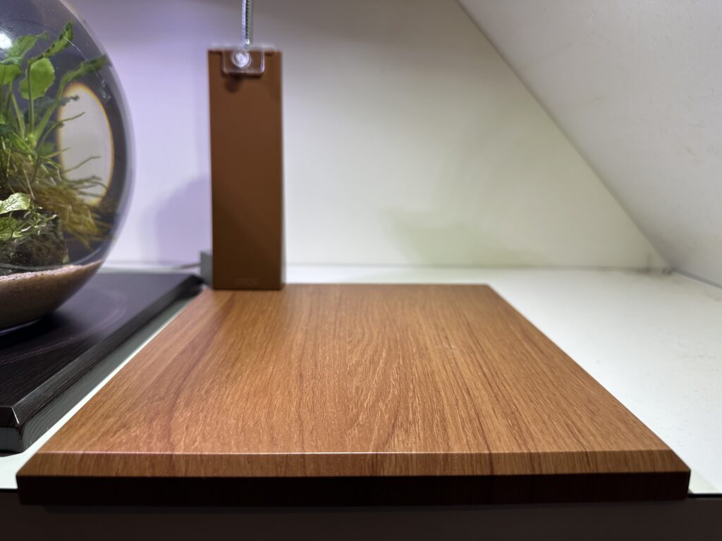 20cm×20cm以下の水槽を置くことが出来る木製のベースは高級感があり、ボトルとの統一感と相まってより一層素敵になります。