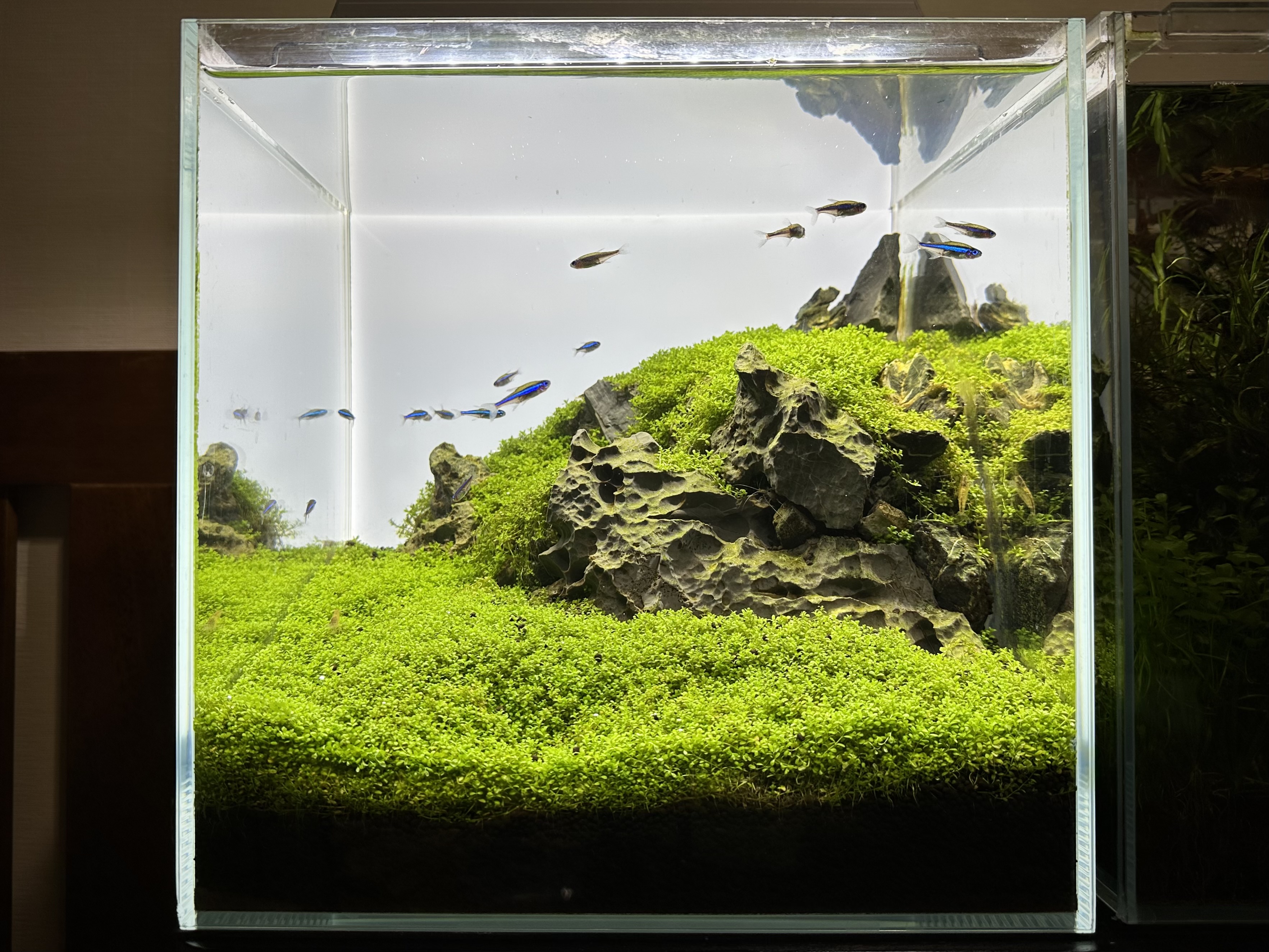 【ミスト式で簡単】キューバパールグラスを使ったクールな山岳レイアウトを作る【30cmキューブ水槽】
