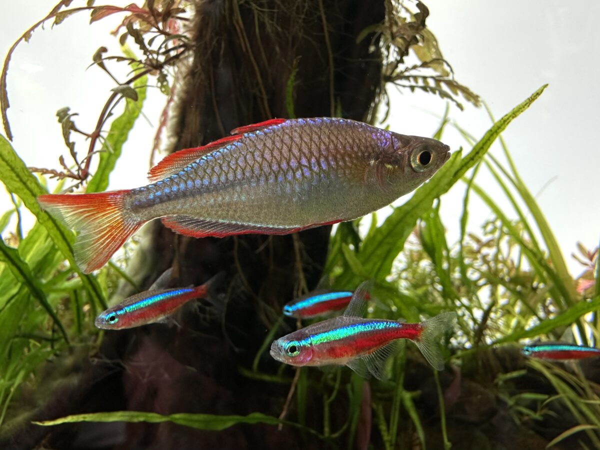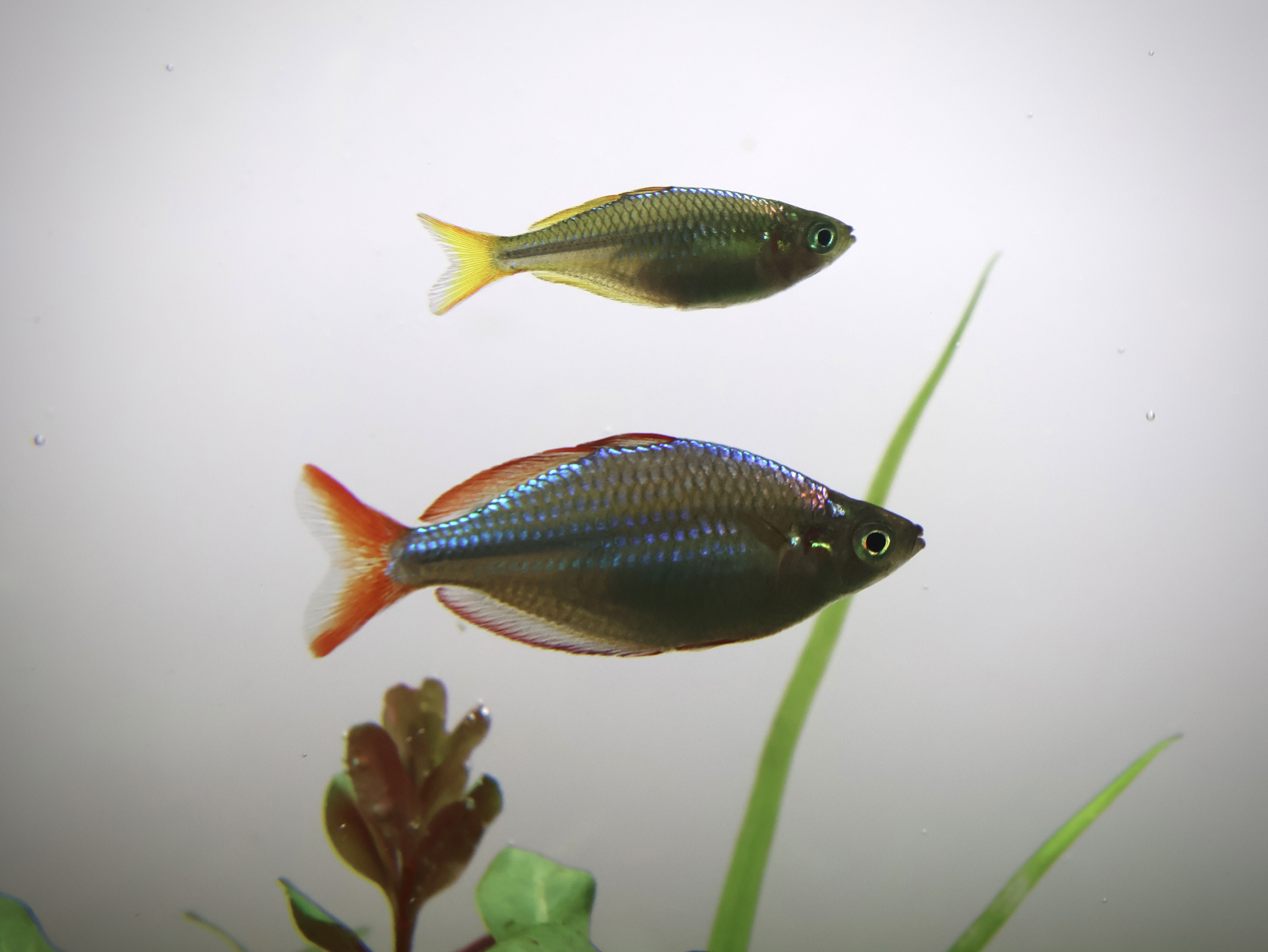 ネオンテトラに代表されるカラシン目や、ラスボラ系のコイ科の熱帯魚たちと並んで水草水槽におすすめなのがレインボーフィッシュです。