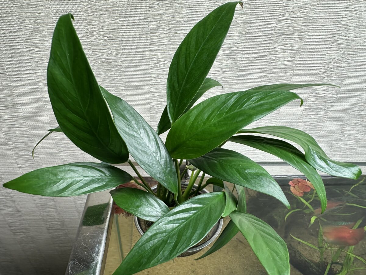 アヌビアス・ヘテロフィラの水上葉は丈が約30cmほどになり、葉の長さは10cm程度です。