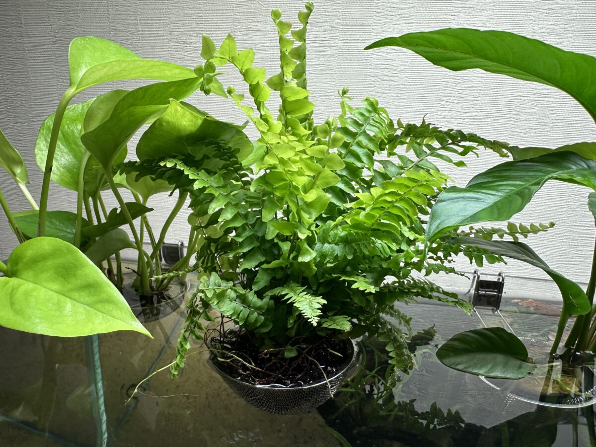 根茎のあるものはある程度沈めても大丈夫ですが、シダ類などは水面ギリギリが良いでしょう。