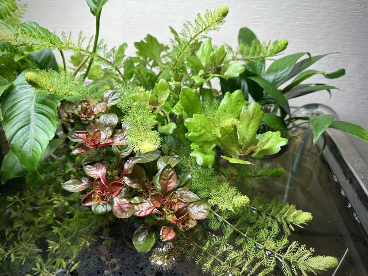 水草水槽を楽しむのであれば是非挑戦したいのが水上葉を使ったオープンアクアリウムです。