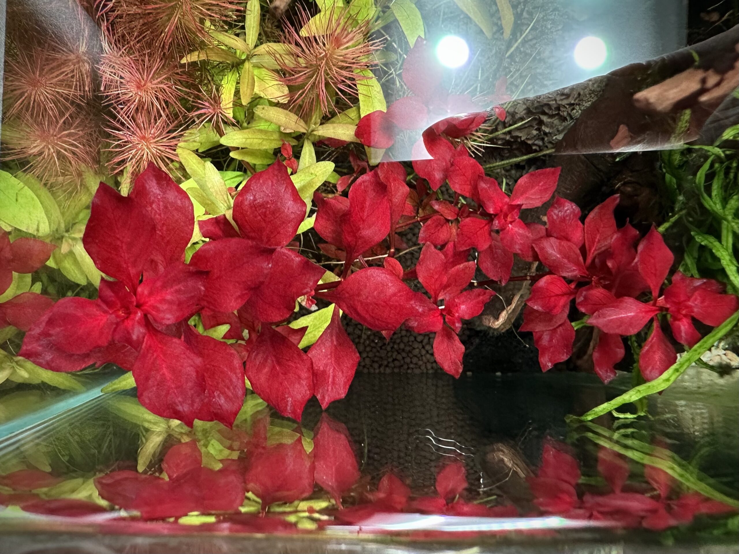 単純に色の赤さでいえば同じ赤系の水草のなかでも上位に入るでしょう。